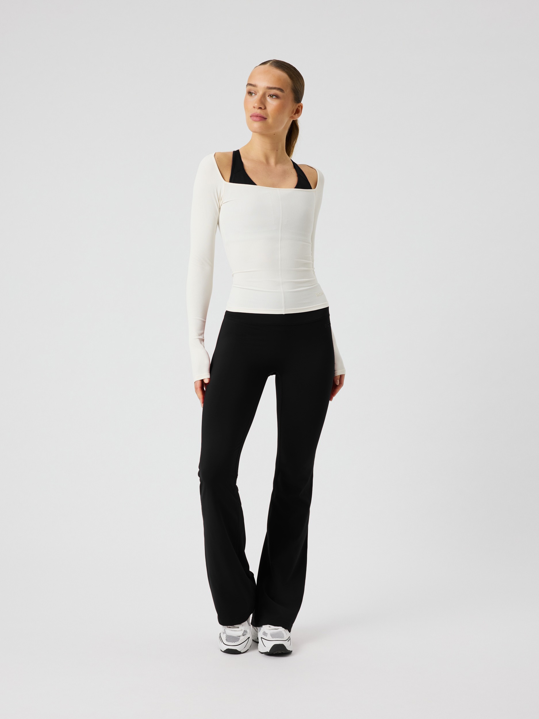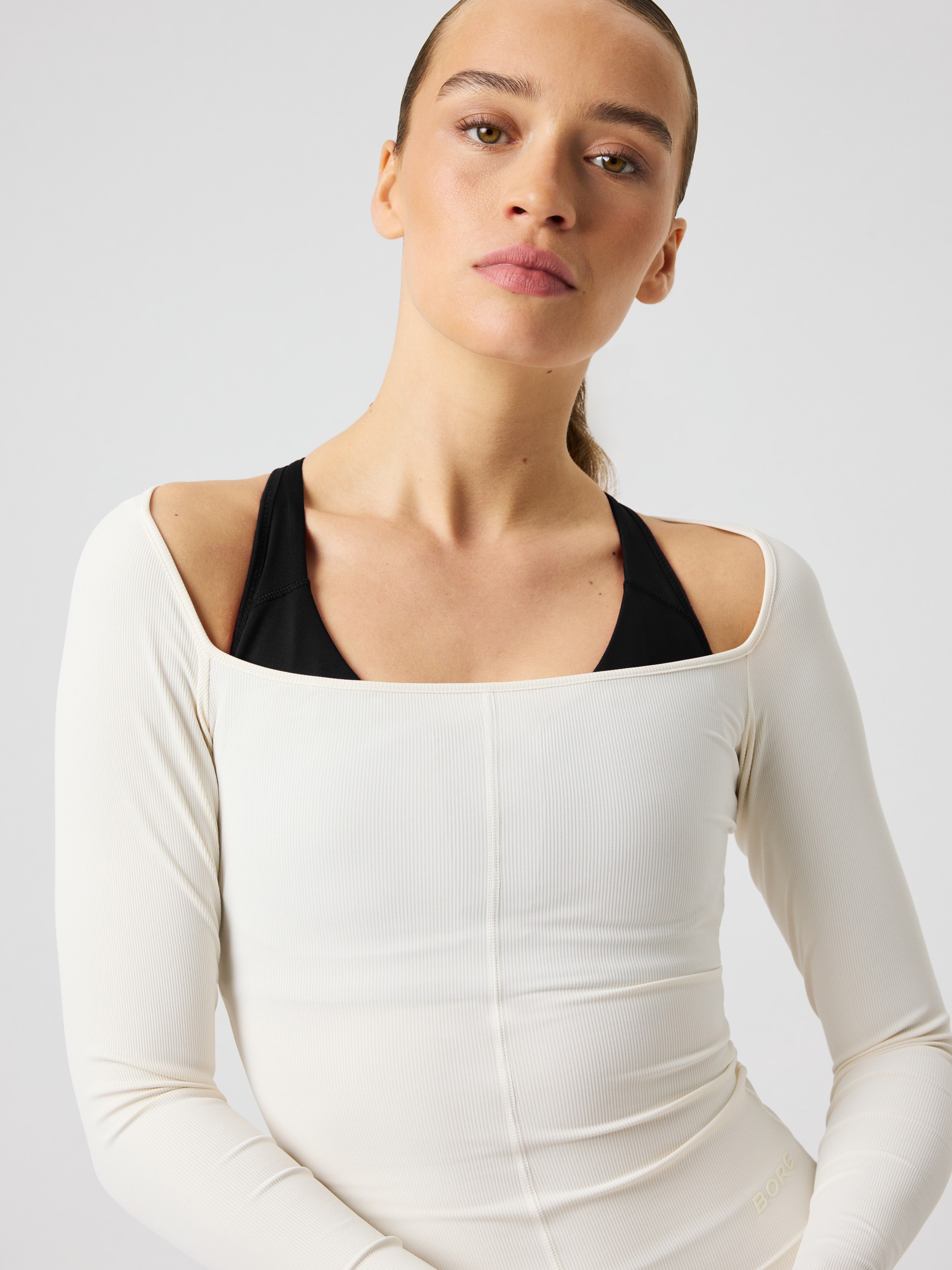 The Björn Borg Studio Ballerina Long Sleeve in Tofu is crafted from recycled polyester combined with elastane for exceptional stretch and a soft feel.