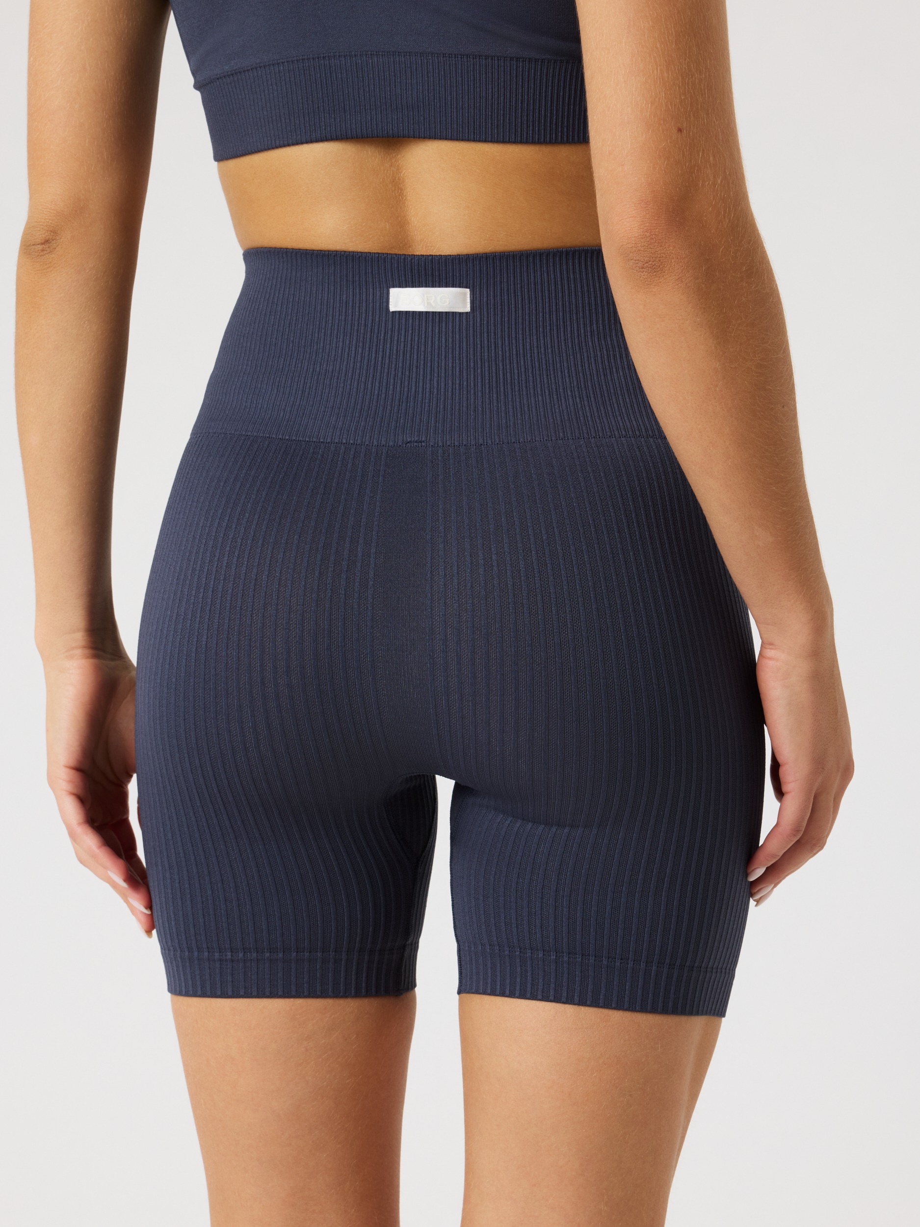 The Björn Borg Studio Seamless Ribbed Shorts for women are made from recycled polyamide stretch quality fabric with a rib-knitted seamless construction. They have a short leg-length with a high waist and have double fabric at the waist for additional support, with a woven logo label on the back.
