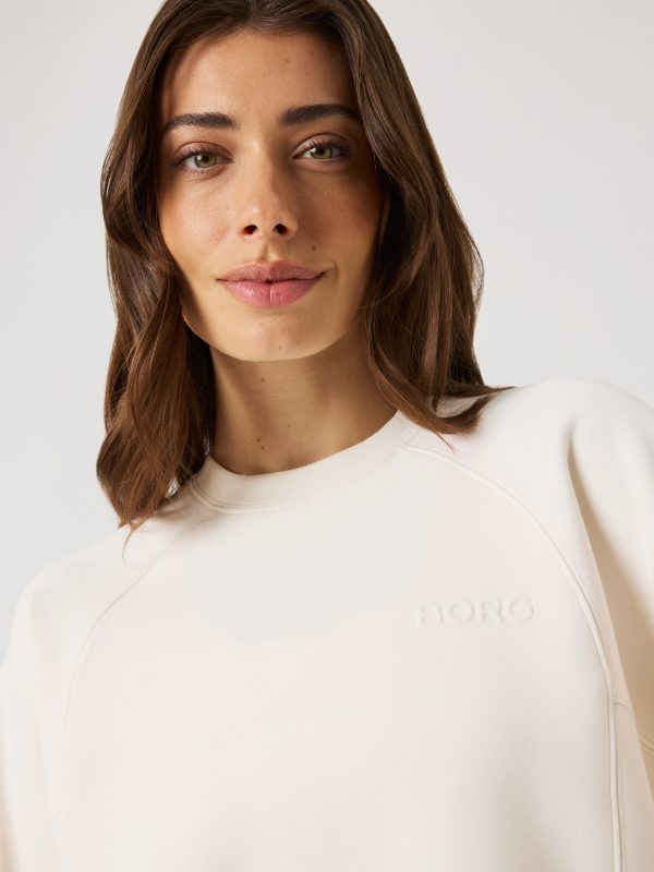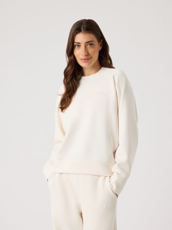 The Björn Borg Studio Soft Sweatshirt in Tofu combines TENCEL™ Modal with recycled polyester and elastane for a soft, flexible feel. Designed for women, this long-sleeve sweatshirt features raglan sleeves that enhance natural movement. The relaxed silhouette flatters your shape while providing comfortable everyday wear. A clean tofu shade adds a fresh, minimalist touch to your wardrobe.