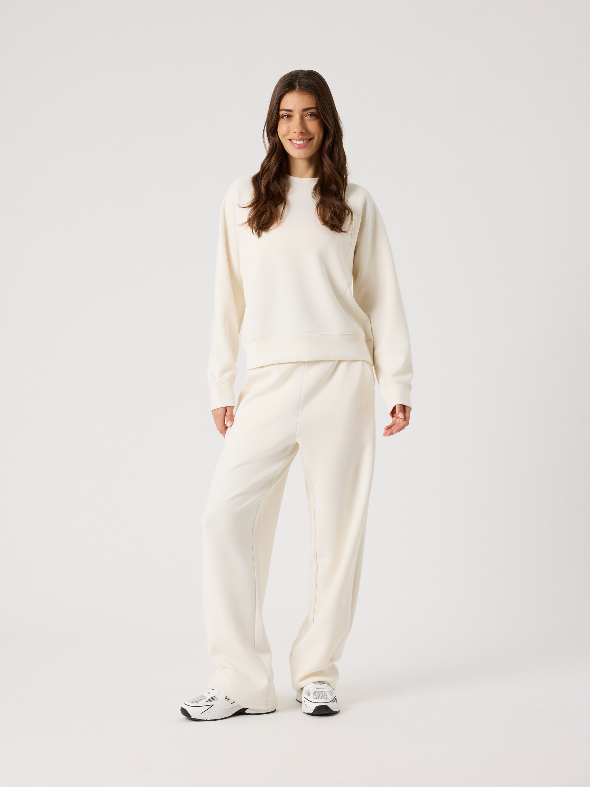 The Björn Borg Studio Soft Sweatshirt in Tofu combines TENCEL™ Modal with recycled polyester and elastane for a soft, flexible feel.
