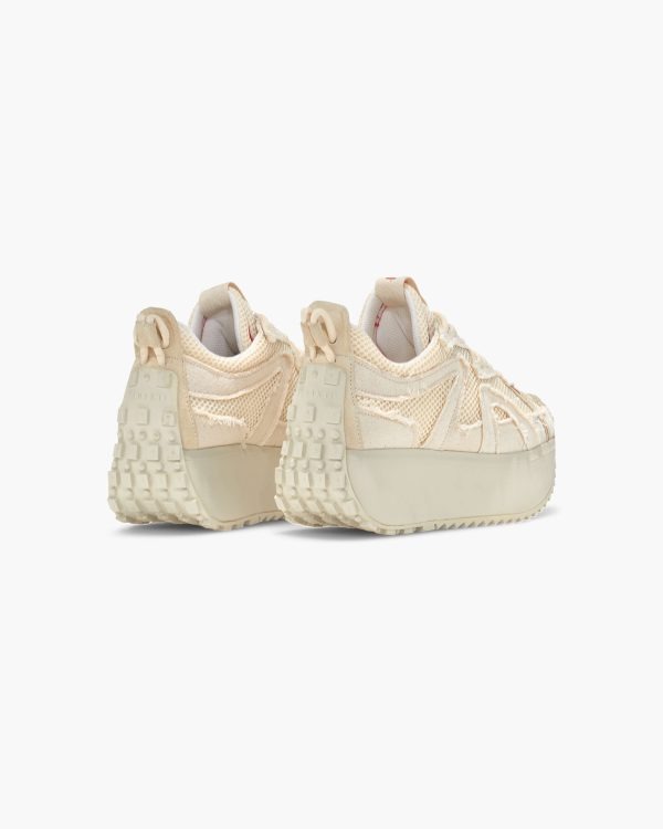 The «Maribella Denim» is a sneaker that combines functionality with fashion through its sporty design. Featuring cotton, mesh and leather elements, as well as an extended outsole, this model stands out through its frayed details. The 5.5 cm high platform sole makes the Maribella a distinctive INUIKII style.