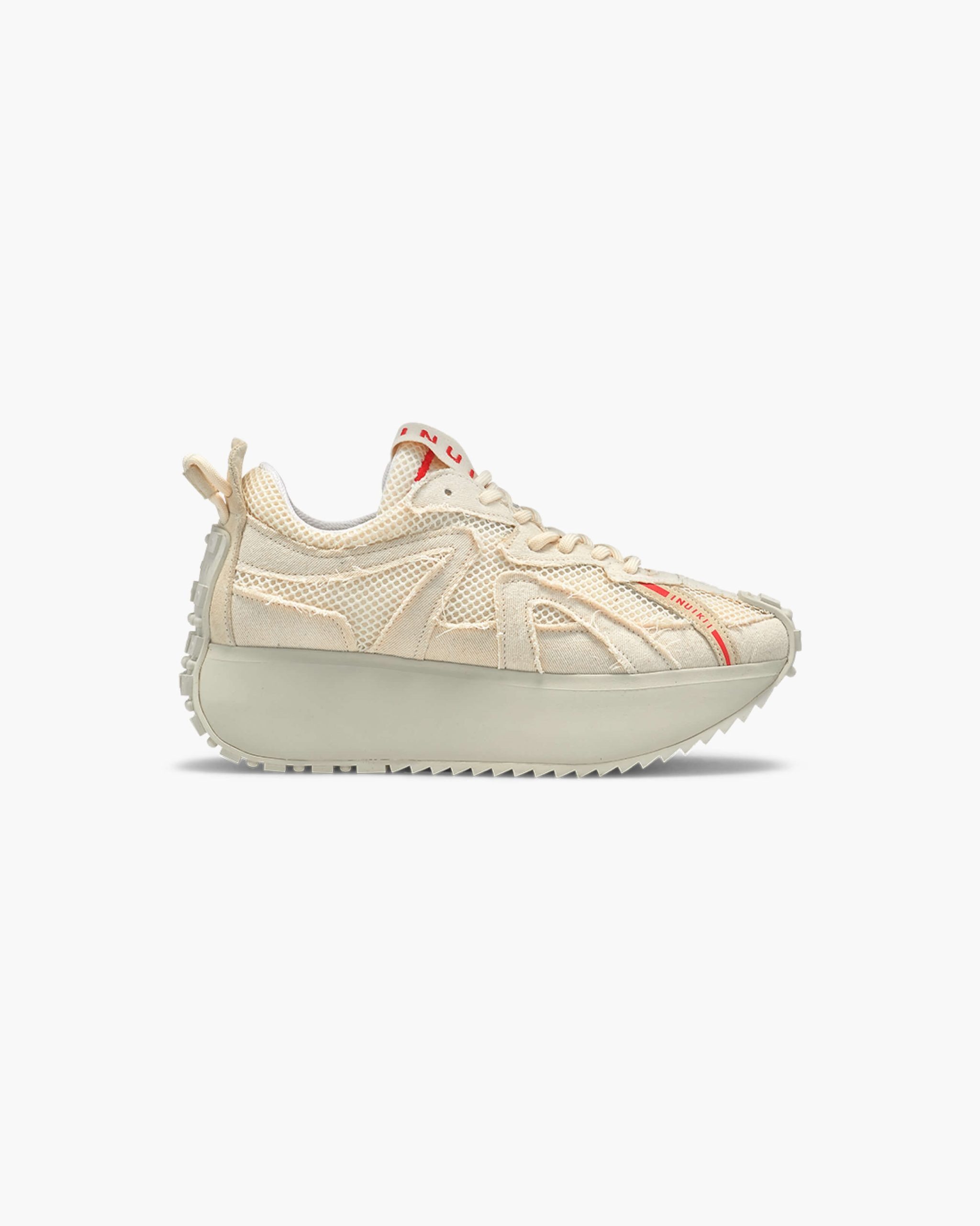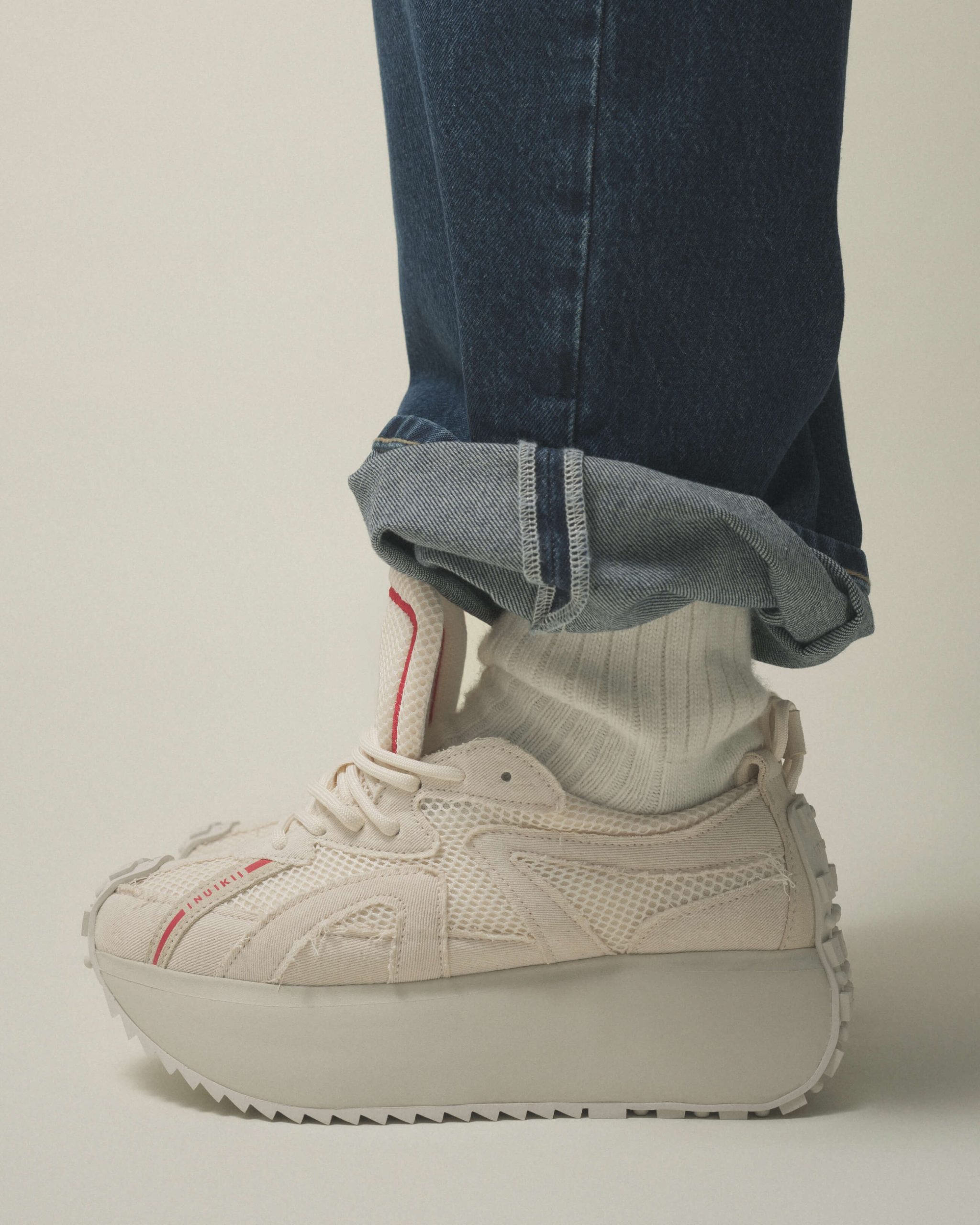 The «Maribella Denim» is a sneaker that combines functionality with fashion through its sporty design. Featuring cotton, mesh and leather elements, as well as an extended outsole, this model stands out through its frayed details. The 5.5 cm high platform sole makes the Maribella a distinctive INUIKII style.
