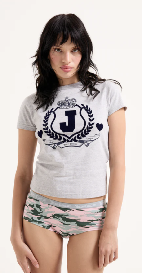 JUICY COUTURE CREST RINGER TSHIRT-SILVER MARL