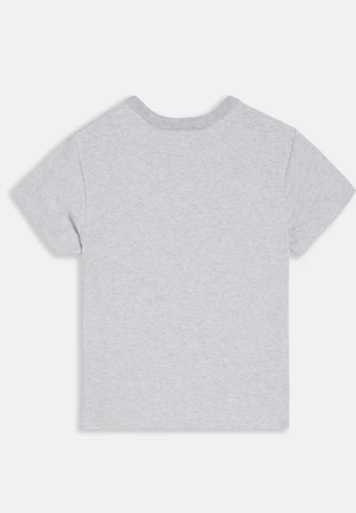 Crew neck t-shirt in silver marl jersey. This fitted tee features a heritage flocked & embroidered crest to the front.