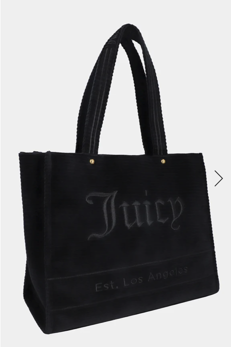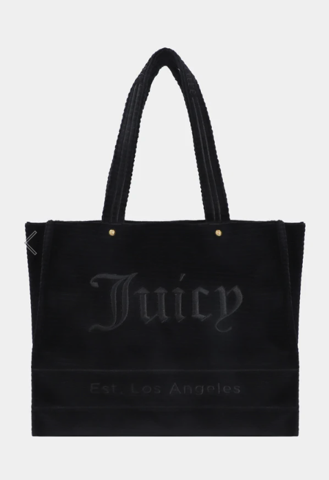 JUICY COUTURE BLACK VELOUR EMBROIDERED TOTE BAG.