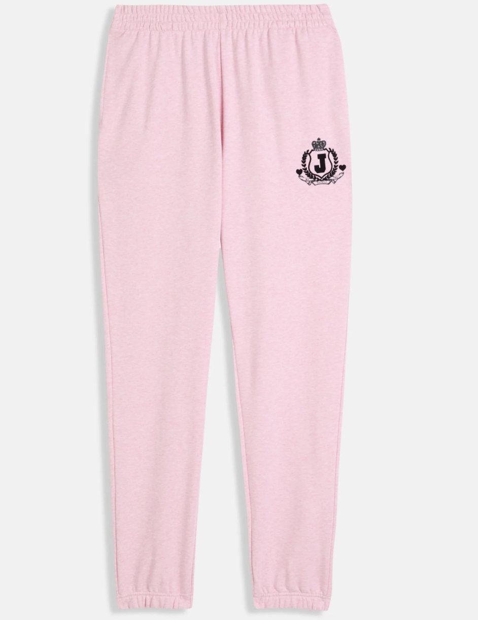 Mid rise cuffed joggers in pink marl fleece. These relaxed tracksuit bottoms feature a flocked & embroidered heritage crest to left hip and two side pockets. These track pants feature a ribbed waistband and are finished with a embroidered crown and flocked J logo to back.