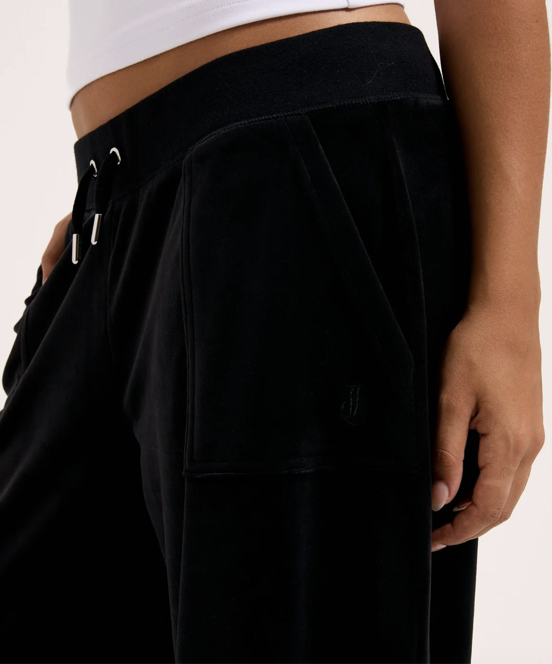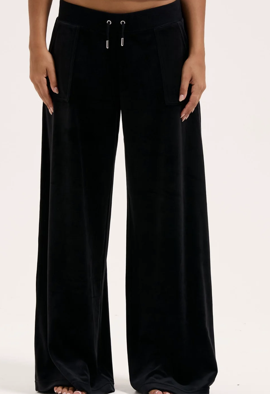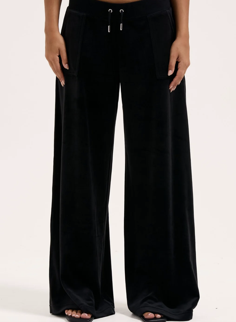 Elevate your off-duty look with the Juicy Couture Yuka Wide Leg Trackpant. Crafted from plush velour, these relaxed-fit pants feature a drawstring waist, oversized pockets, and a fluid wide-leg silhouette for ultimate comfort and effortless style.”