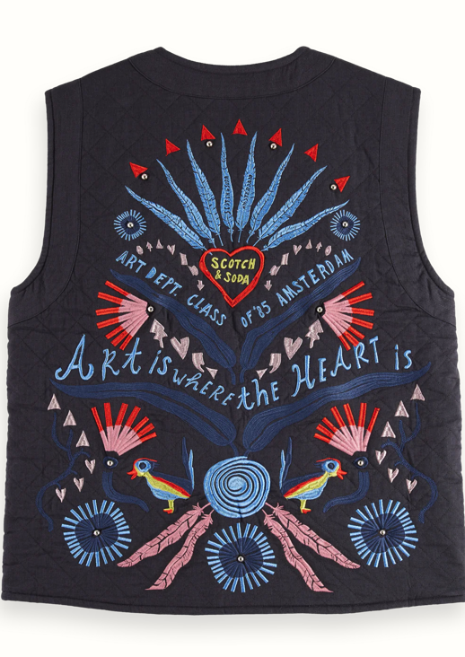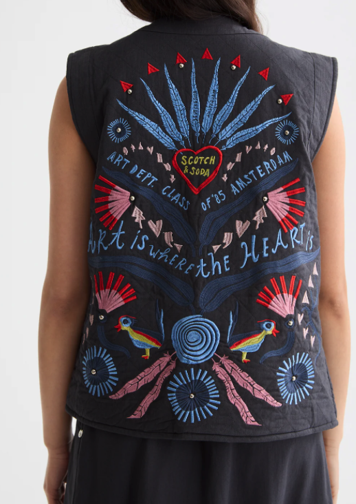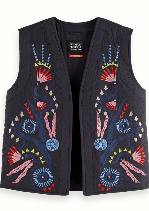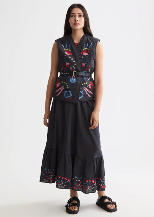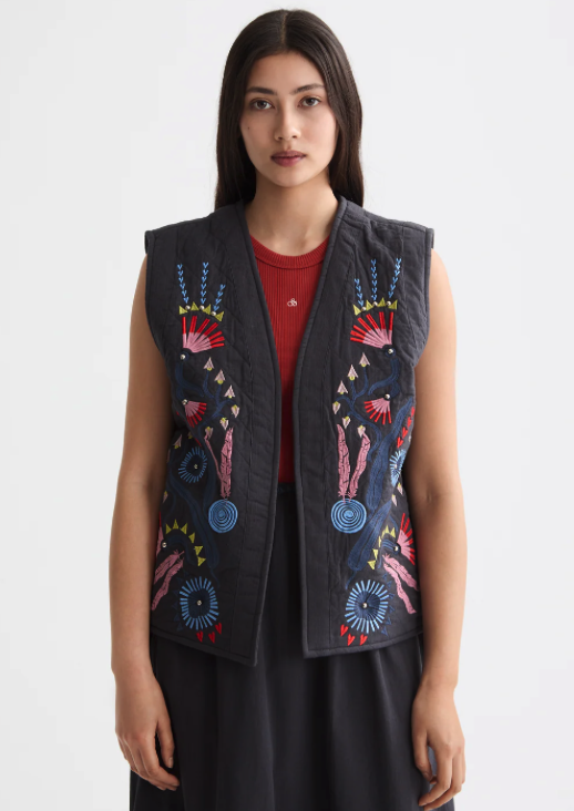 This folk-inspired gilet with intricate embroidery is the perfect layering piece.