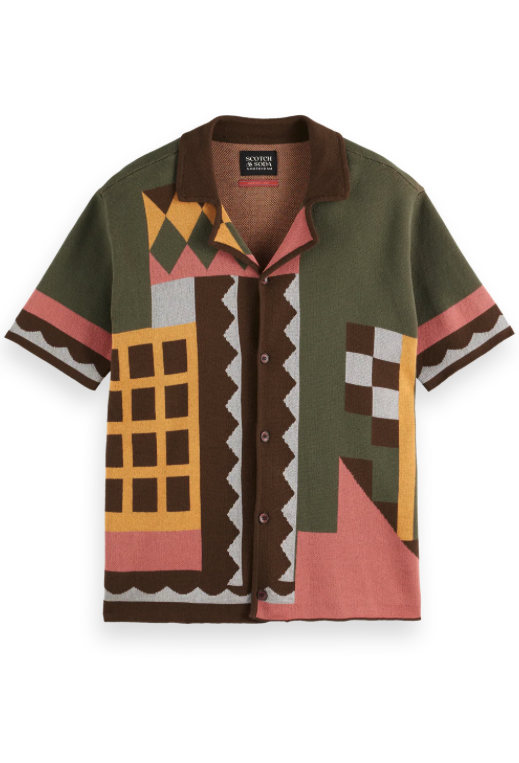 Scotch & Soda jacquard knitted short sleeve shirt.