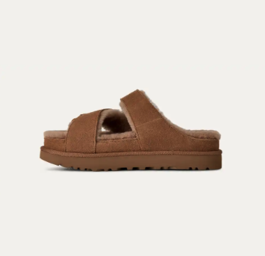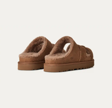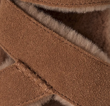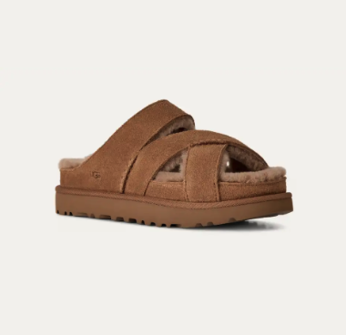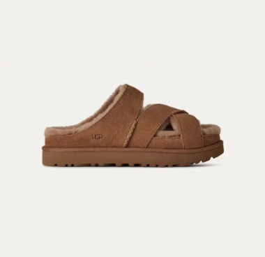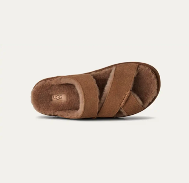 Slippers or sandals? Why choose. Our Greenport Cross Strap Slide keeps you cozy at home and serves all the comfort as you run around town. The genuine suede upper and sheepskin lining are the UGG® details you know and love, while the crisscross cutout straps breathe new life and make this slide anything but basic. Finished off with a sugarcane EVA outsole for lightweight cushioning, no matter where you wear them.