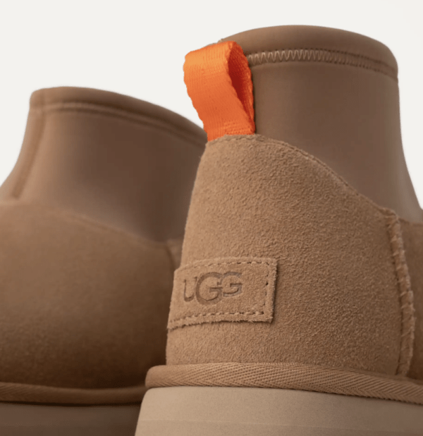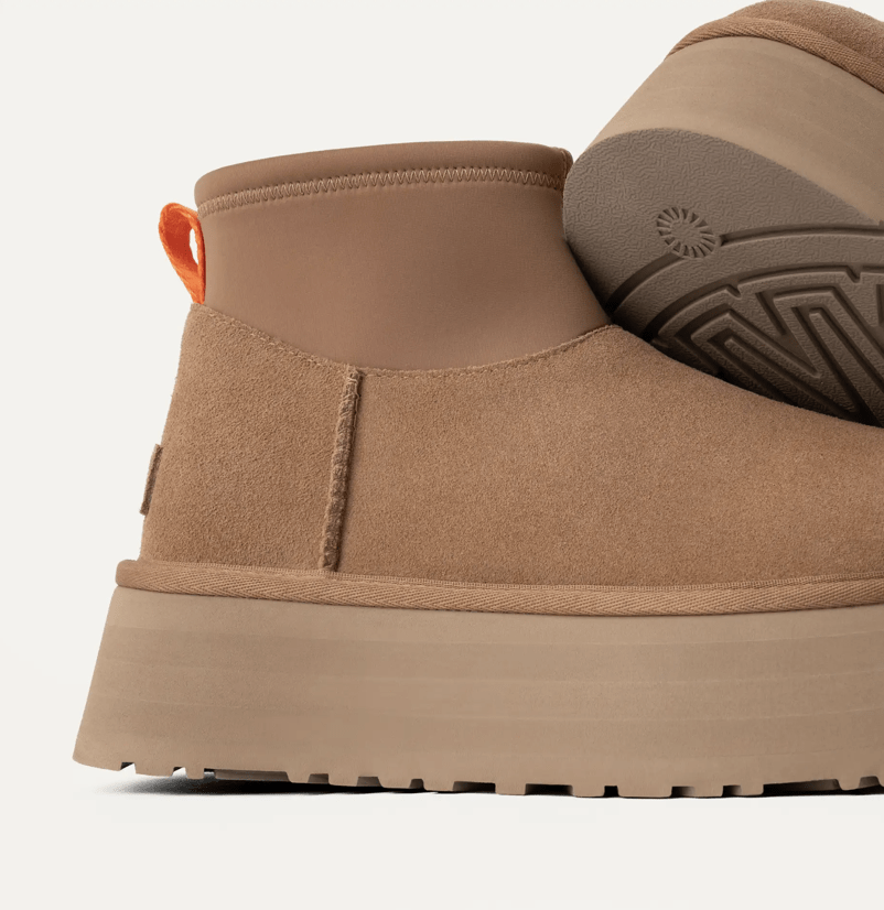 • The UGG® Logo embossed suede heel label