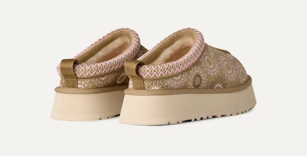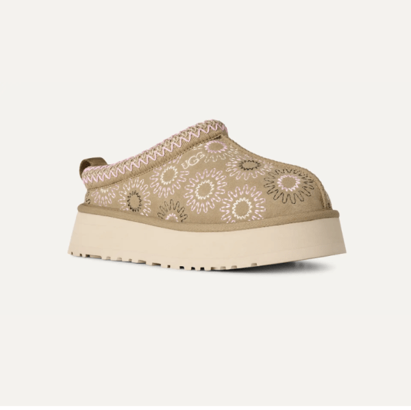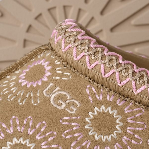 In a sunshine state of mind. Our Tazz Sun Stitch takes the essential elements of your favorite Tazz II platform slip-on and adds our Sun Logo Shape with all-over embroidery across the suede upper. Featuring a lightweight sugarcane EVA outsole, our 100% recycled UGGbraid trim, and a plush sheepskin lining, it fits in as well at home as it does finding fun in the sun.