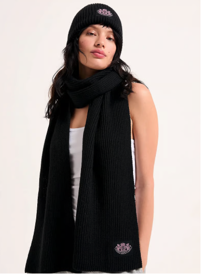 Stay cosy with this chunky knit beanie and scarf set. Both pieces feature a woven badge.
