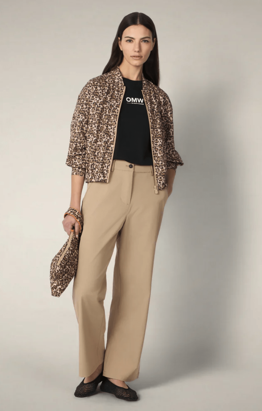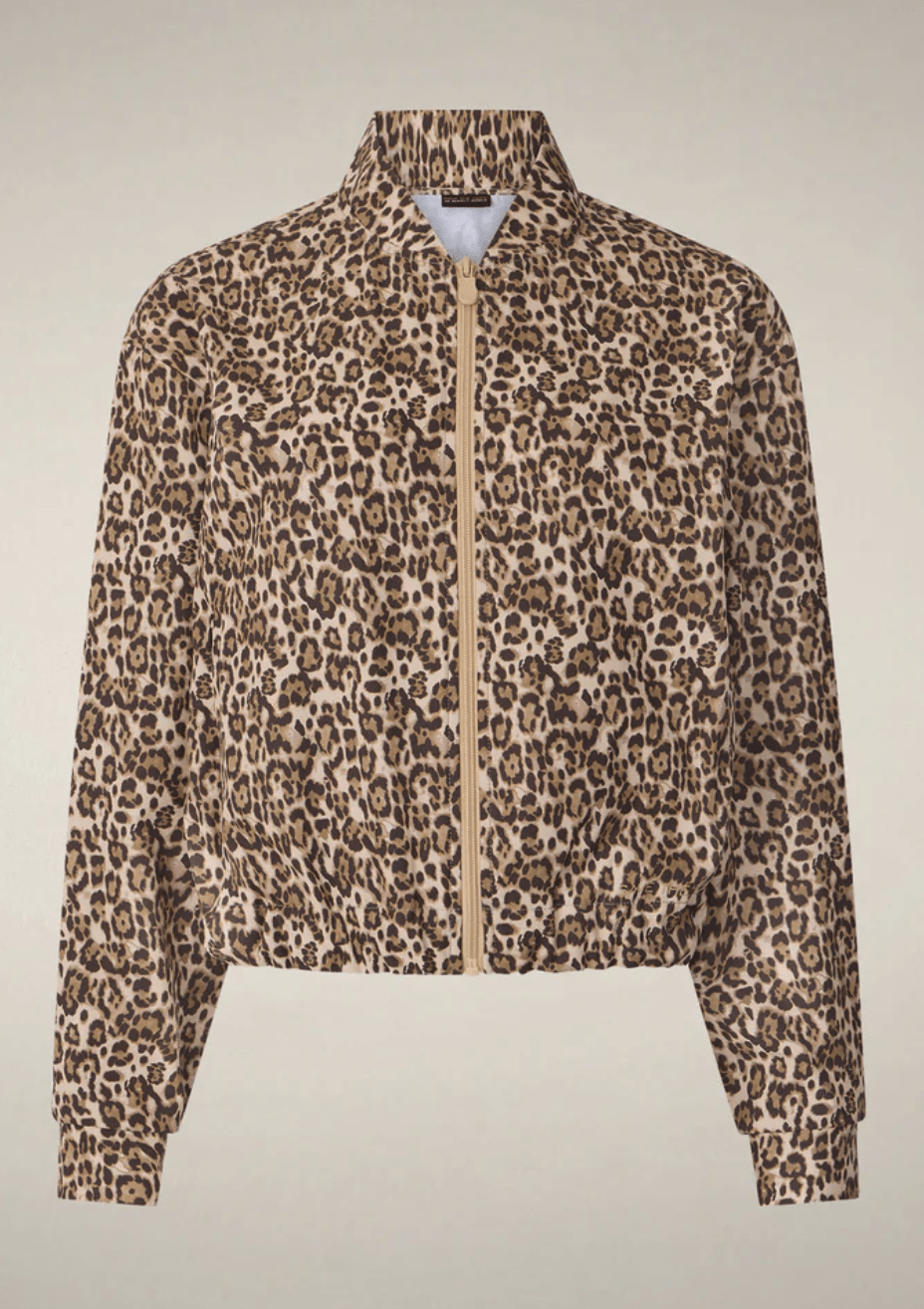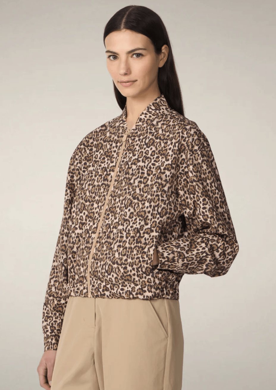 Make a quick statement in the Alana model women’s bomber jacket, a throw-on layer in packable stretch recycled polyester with an all-over leopard print.