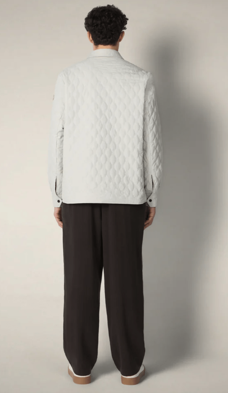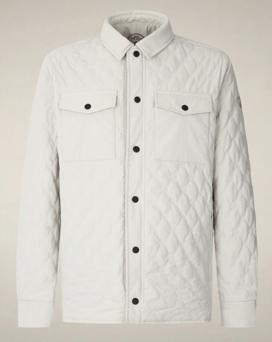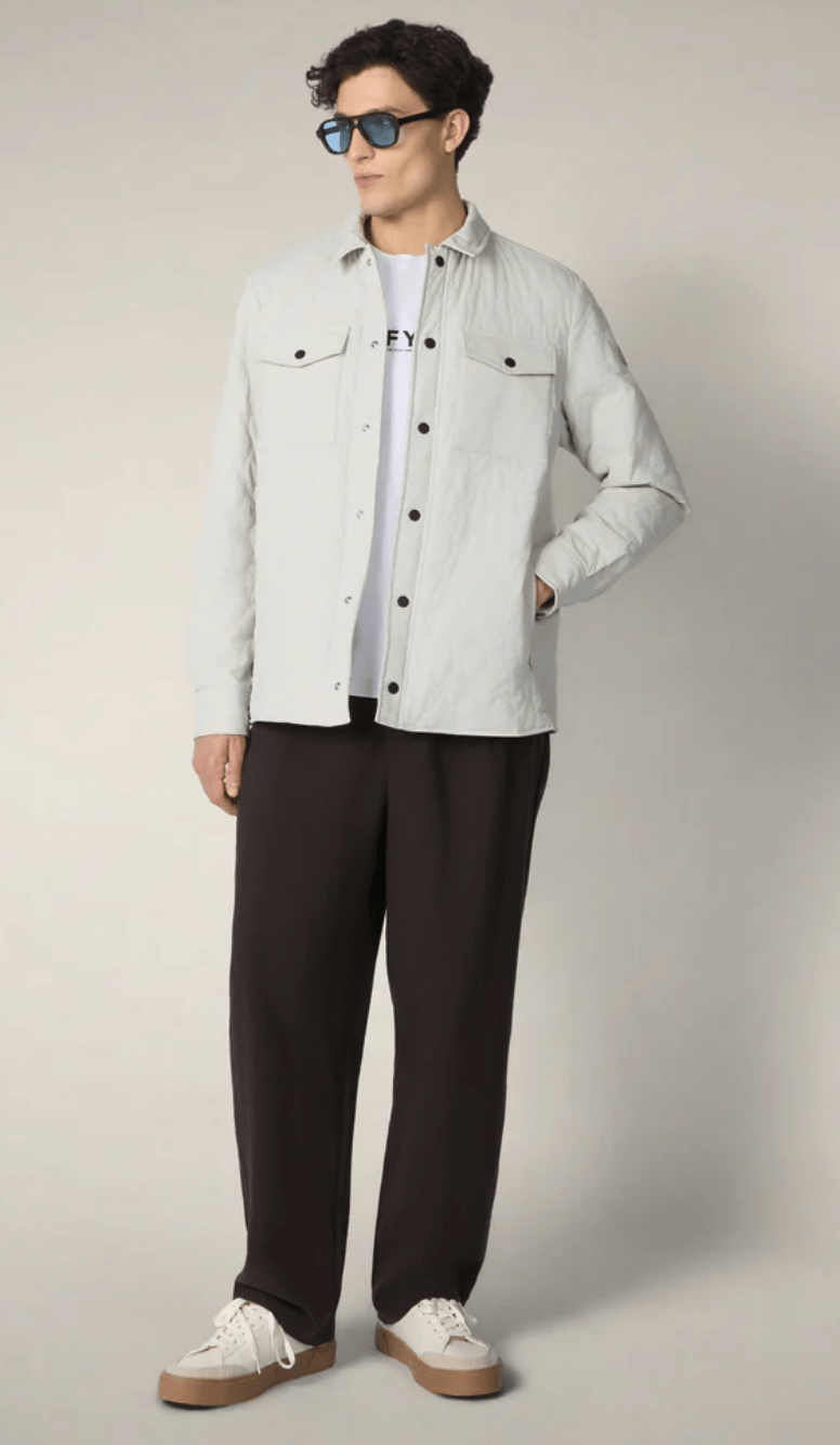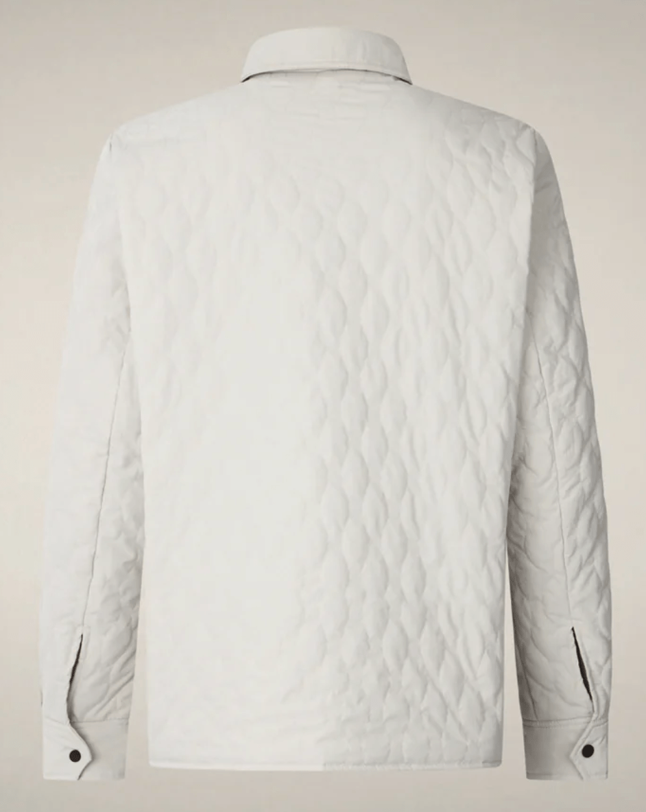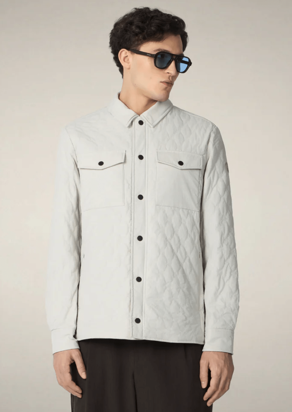 Shirt style, puffer ease—the Anton model men’s jacket uses lightweight fabric and padding with vertical wave quilting.