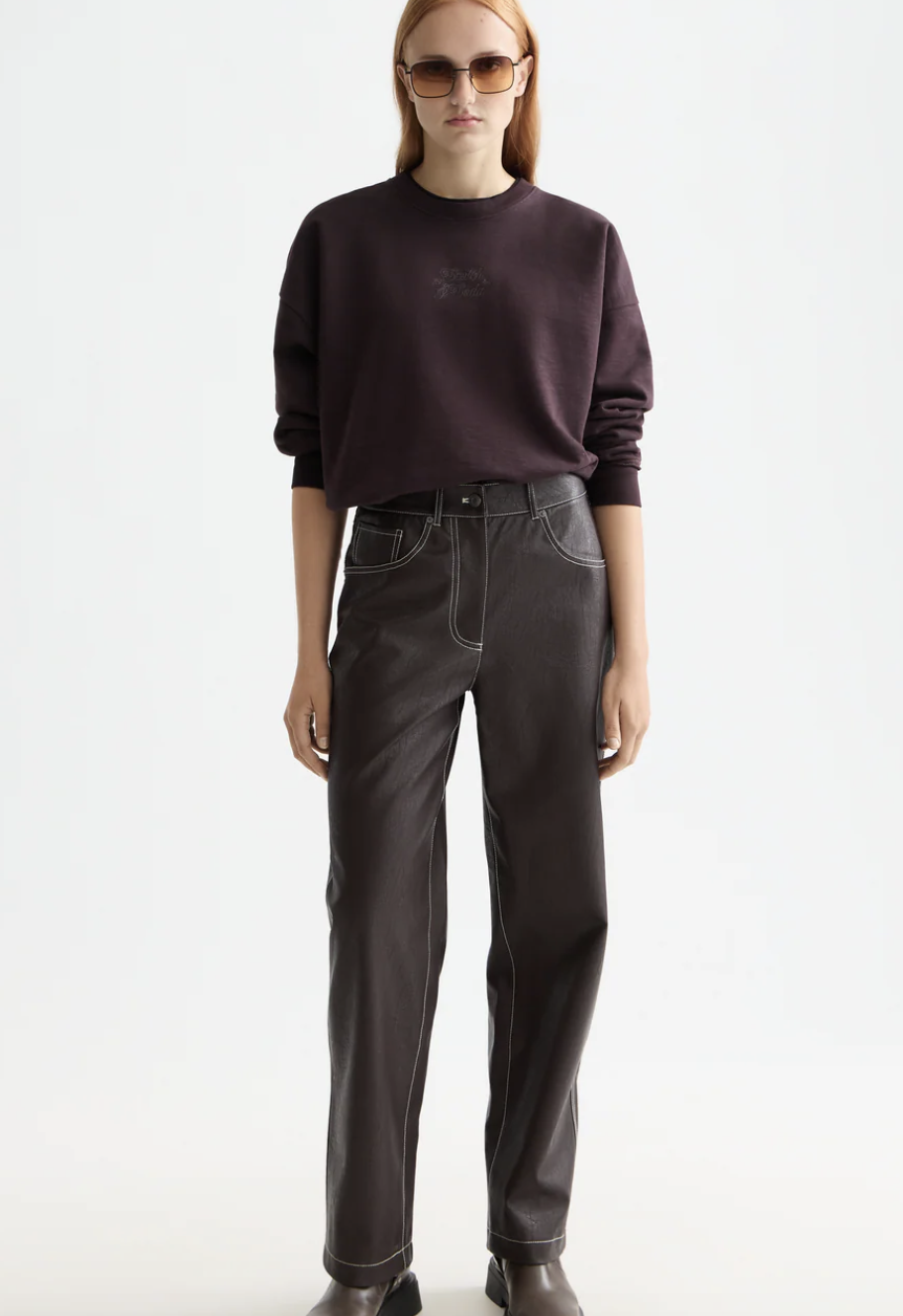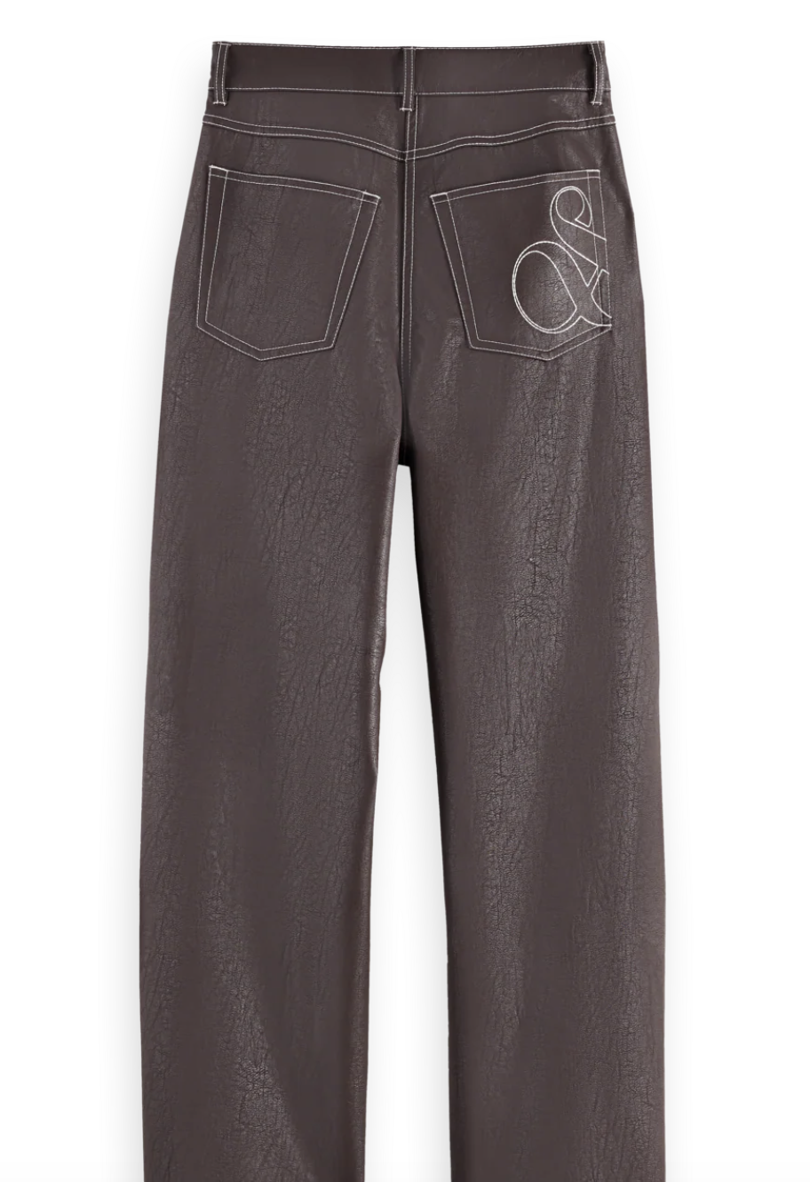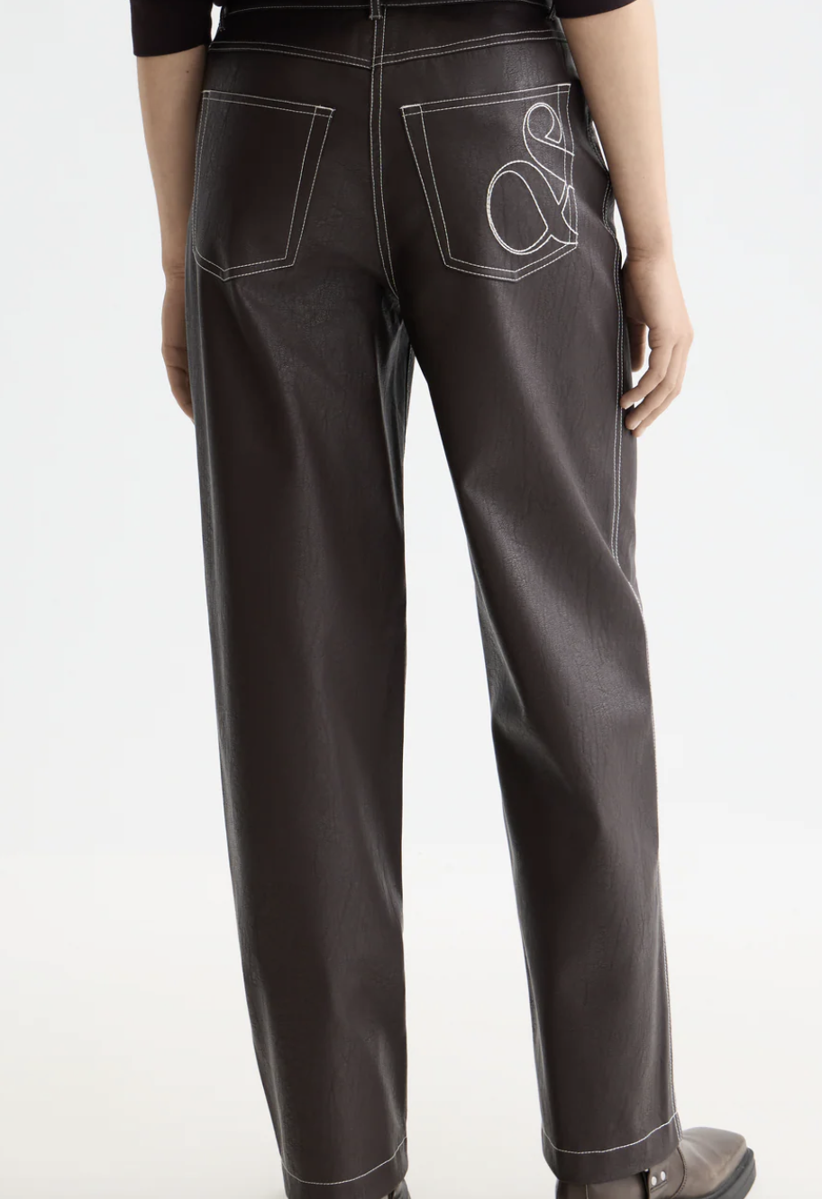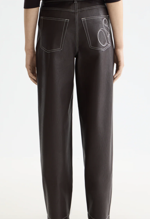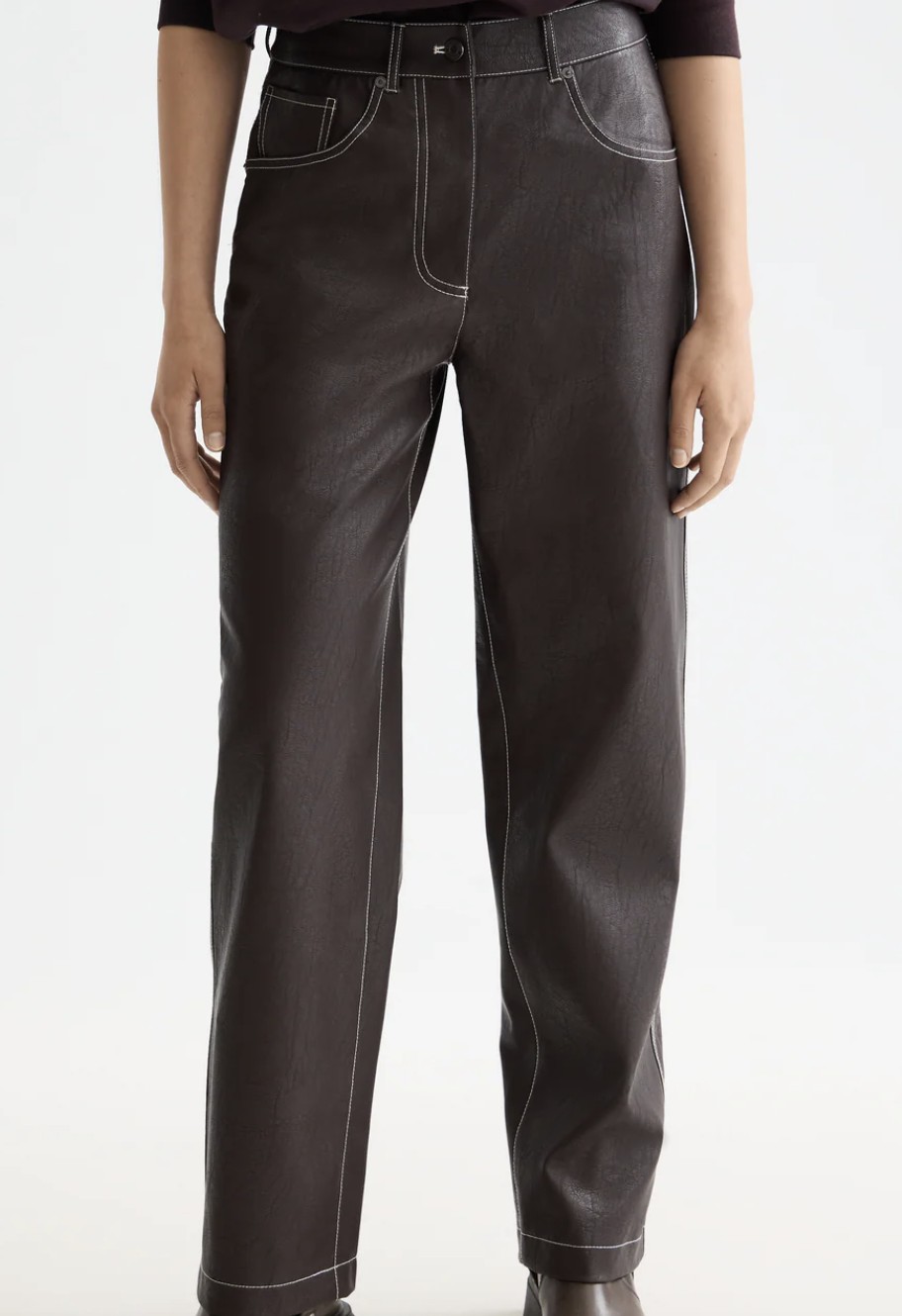 High-rise straight-leg pants in soft faux leather for a sleek, modern edge.
