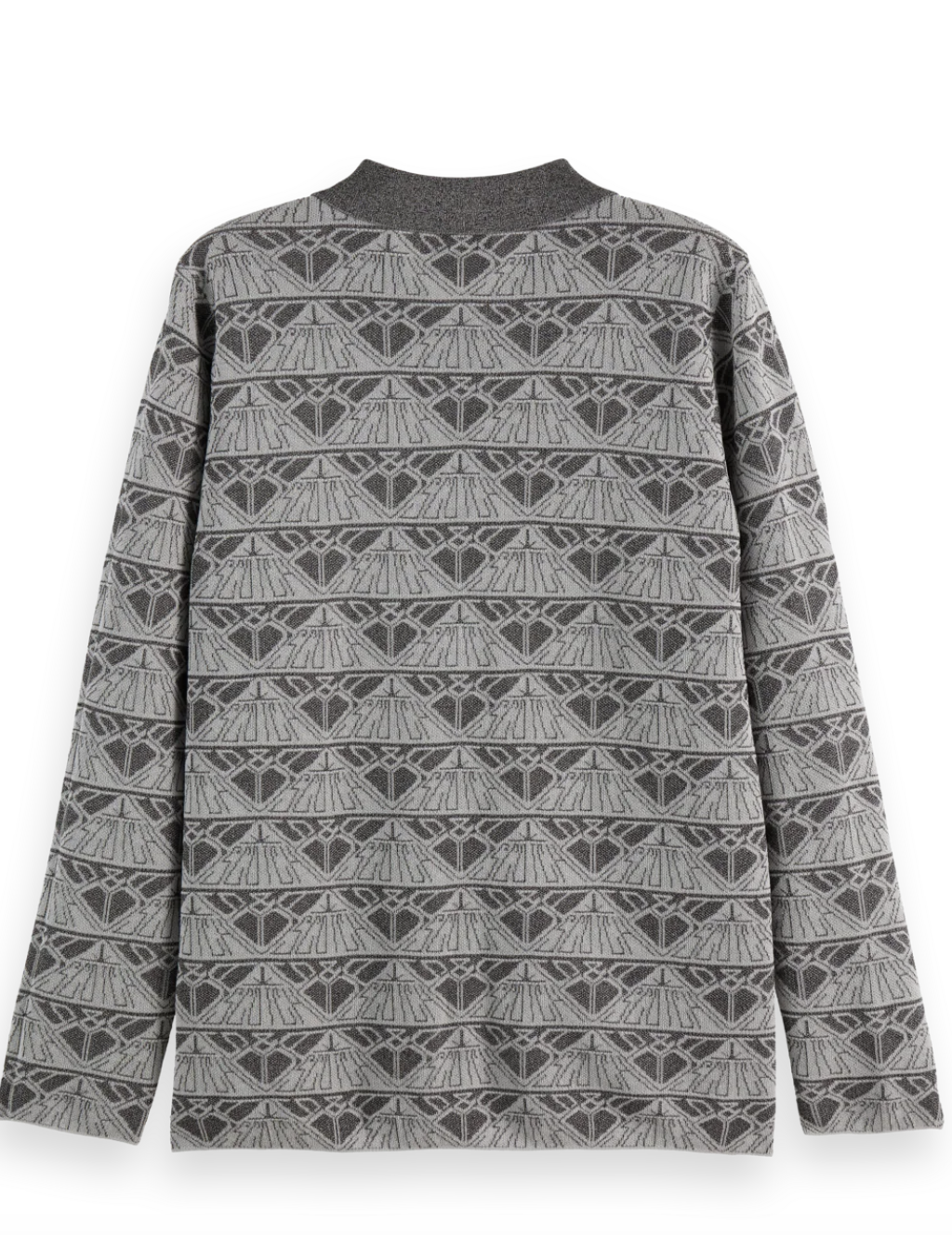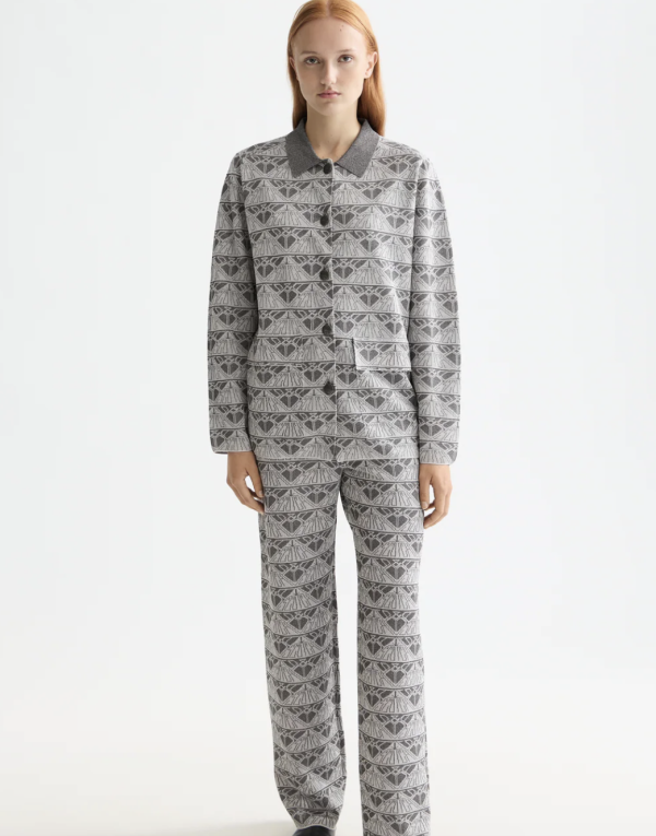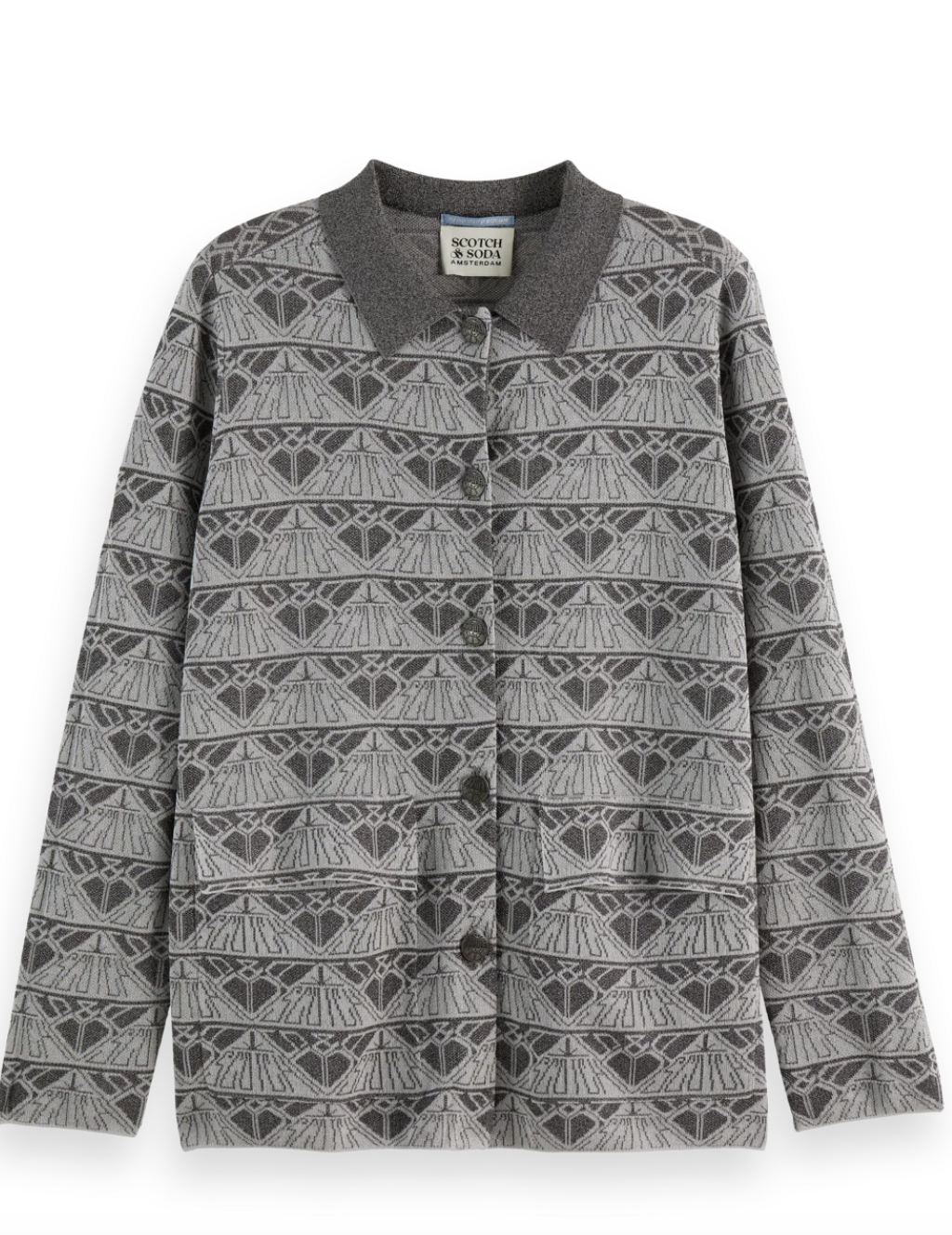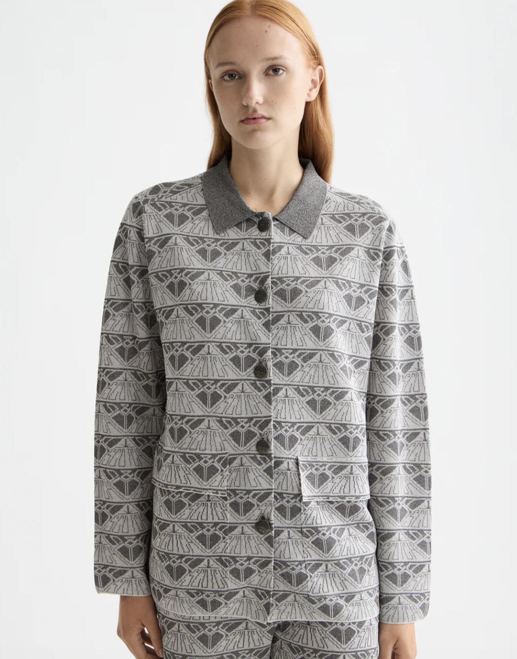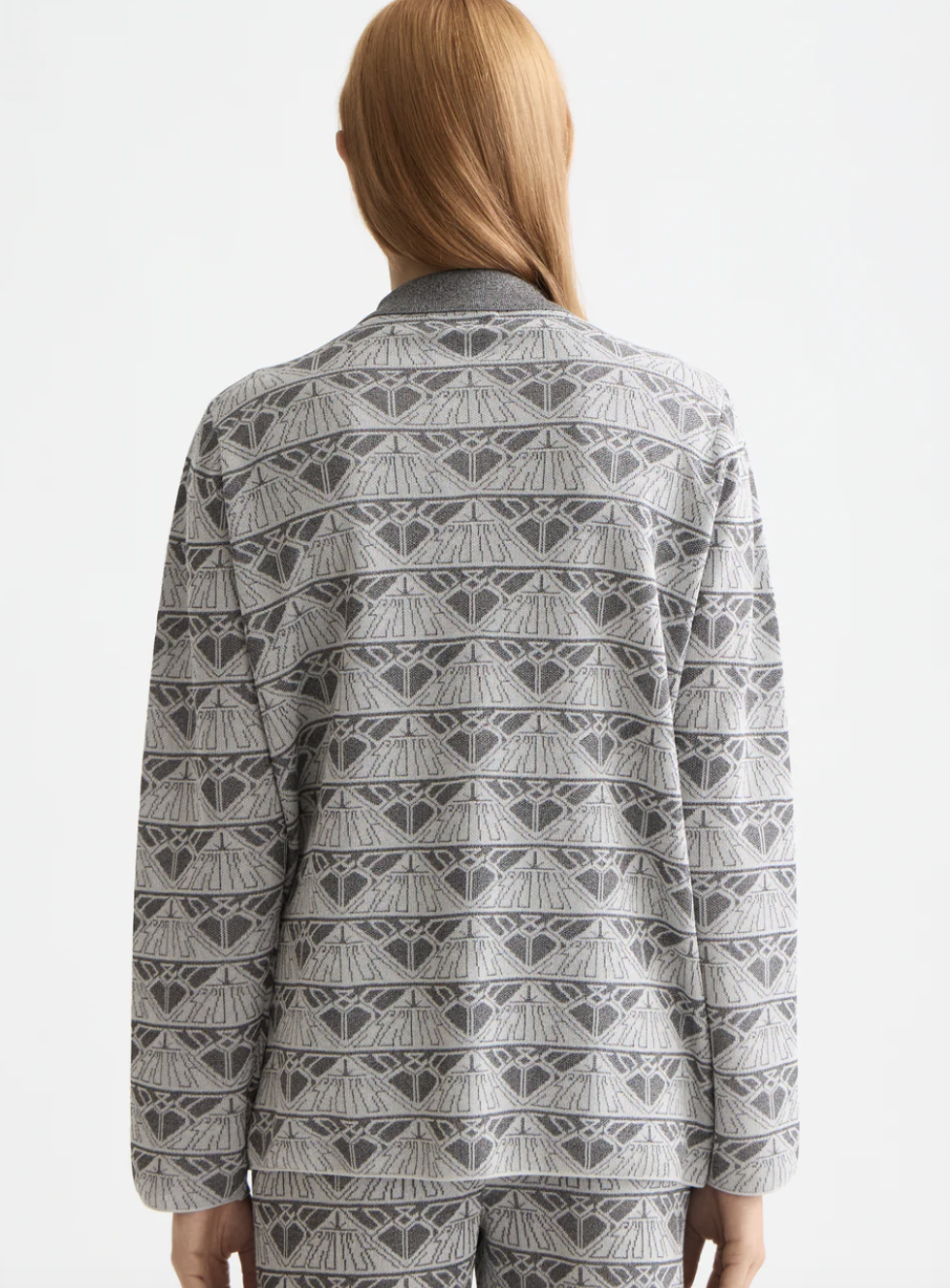A textured jacquard knit jacket that blends structured elegance with soft comfort – perfect for layering.